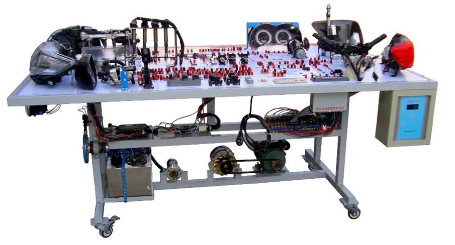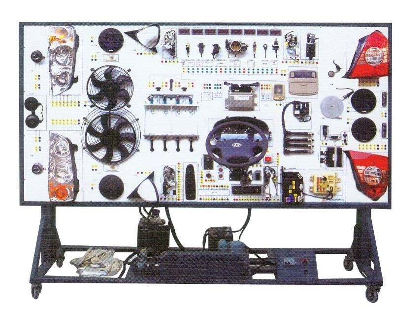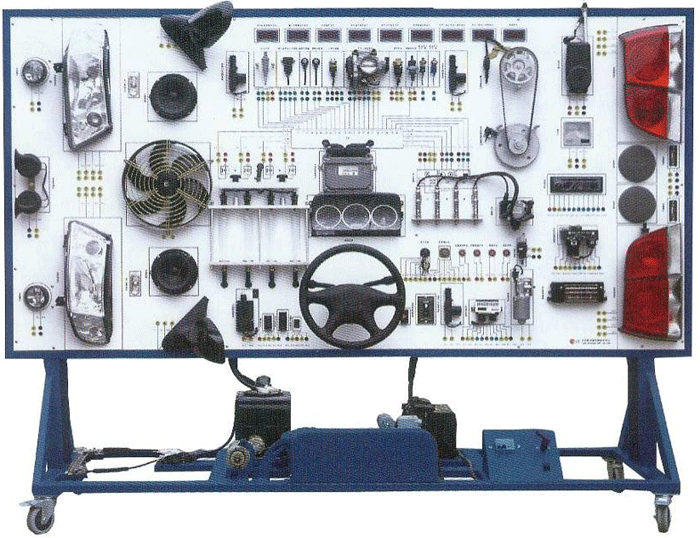 汽車電氣設(shè)備實(shí)訓(xùn)室。汽車電器設(shè)備實(shí)訓(xùn)室包含有汽車燈光系統(tǒng)、車載網(wǎng)絡(luò)系統(tǒng)、全車電器系統(tǒng)、汽車啟動(dòng)系統(tǒng)、汽車空調(diào)系統(tǒng)、全車線路試驗(yàn)臺(tái)、等實(shí)訓(xùn)教學(xué)設(shè)備。該實(shí)訓(xùn)室可以承擔(dān)《汽車構(gòu)造》、《汽車電器設(shè)備》、《汽車電控系統(tǒng)》、《汽車檢測(cè)與診斷》等課程的實(shí)踐教學(xué)任務(wù)?梢杂糜谘芯、分析全車電器系統(tǒng)、燈光系統(tǒng)、儀表系統(tǒng)等電器設(shè)備的電路及功能。利用這些系統(tǒng)進(jìn)行實(shí)踐教學(xué),使學(xué)生熟悉汽車電器的結(jié)構(gòu)和工作原理,掌握各個(gè)系統(tǒng)的基本組成電路,掌握主要電路的檢測(cè)方法和系統(tǒng)的故障特征,從而具有一定的檢測(cè)和調(diào)校能力。
