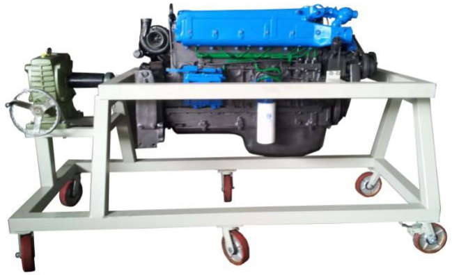2.采用減速翻轉(zhuǎn)機(jī)構(gòu),可使發(fā)動機(jī)任意角度旋轉(zhuǎn),并能任意位置鎖止,便于學(xué)生從不同的角度進(jìn)行拆卸和裝配。