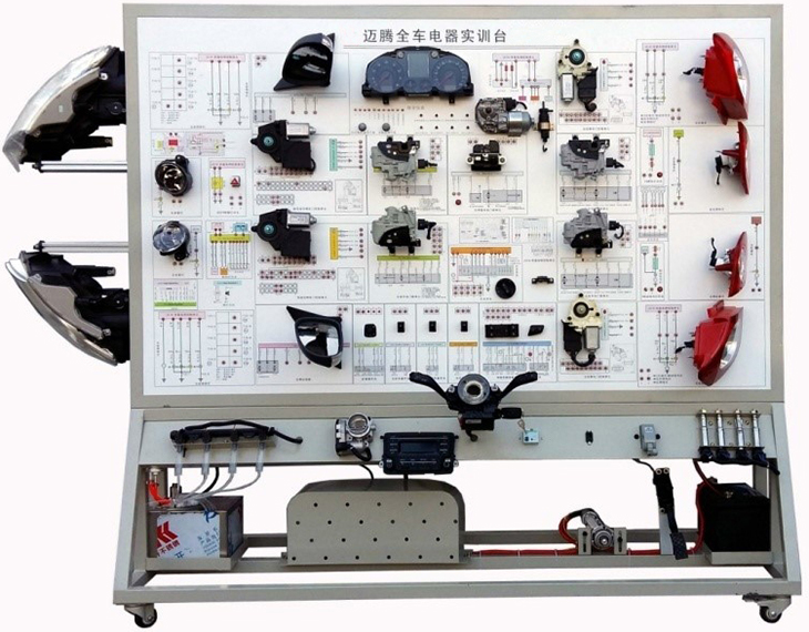 該設(shè)備采用全新邁騰B8L 2021款車身電器實(shí)物為基礎(chǔ),充分展示汽車儀表系統(tǒng)、燈光系統(tǒng)、雨刮系統(tǒng)、喇叭系統(tǒng)、電動(dòng)車窗系統(tǒng)、電動(dòng)門鎖、音響系統(tǒng)、起動(dòng)系統(tǒng)和充電系統(tǒng)等汽車電器各系統(tǒng)的組成結(jié)構(gòu)和工作過程。