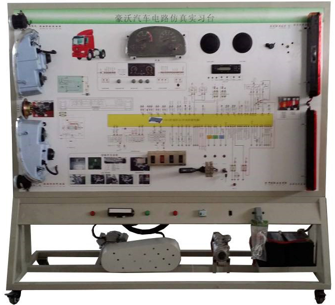 豪沃汽車電路仿真實習(xí)臺采用全新原整車電器實物為基礎(chǔ),充分展示汽車儀表系統(tǒng)、燈光系統(tǒng)、雨刮系統(tǒng)、喇叭系統(tǒng)、發(fā)動機電器系統(tǒng)、起動系統(tǒng)和充電系統(tǒng)等汽車電器各系統(tǒng)的組成結(jié)構(gòu)和工作過程。