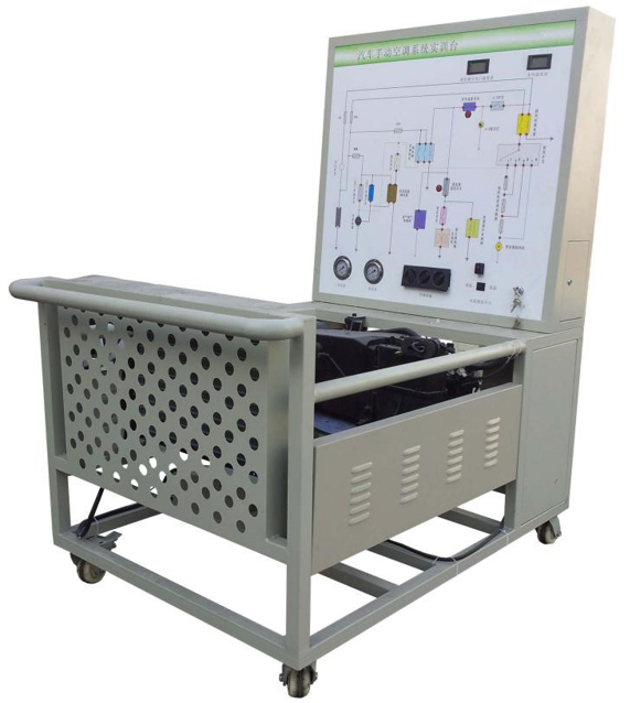 2.由三相電機(jī)做為動(dòng)力源,帶動(dòng)空調(diào)壓縮機(jī)工作。操作空調(diào)控制面板,可真實(shí)演示汽車手動(dòng)空調(diào)系統(tǒng)的工作過程以及工作原理。