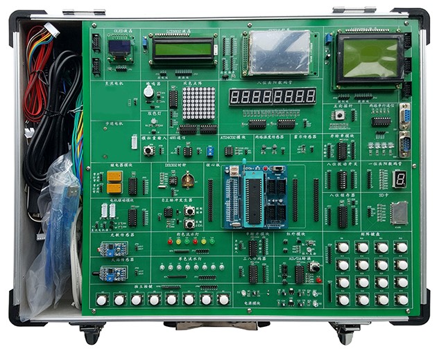 單片機(jī)實訓(xùn)實驗臺,單片機(jī)技術(shù)實驗箱,單片機(jī)與嵌入式實驗室,萬能單片機(jī)實驗開發(fā)系統(tǒng)、單片機(jī)開發(fā)應(yīng)用技術(shù)綜合實驗裝置是電子與通信、自動化信息工程技術(shù)、計算機(jī)基礎(chǔ)課實訓(xùn)室等課程實驗實訓(xùn)。單片機(jī)實驗室是專為電子、通信和自動化等專業(yè)而設(shè)立,單片機(jī)實驗室設(shè)備適應(yīng)《微機(jī)原理與接口技術(shù)》《單片機(jī)原理與應(yīng)用》課程的需要,滿足了正常實驗教學(xué)的同時,設(shè)立了開放性實驗室功能,充分調(diào)動了學(xué)生學(xué)習(xí)的積極性,方便了學(xué)生和老師實驗程序的編制和調(diào)試。單片機(jī)實訓(xùn)設(shè)備主要承擔(dān)《單片機(jī)原理》、《微機(jī)接口與技術(shù)》等相關(guān)課程的實驗、課程設(shè)計及畢業(yè)設(shè)計。