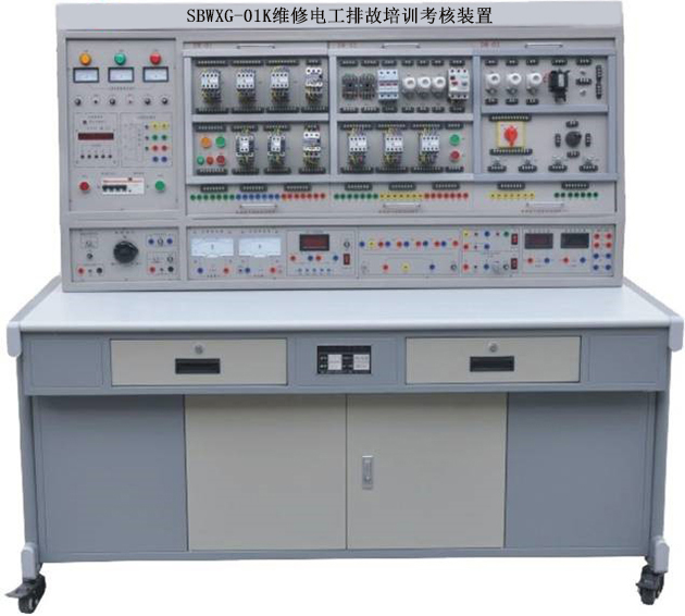 初級(jí)維修電工實(shí)訓(xùn)室設(shè)備可作為維修電工考核裝置,有可在網(wǎng)孔板上進(jìn)行照明器件及線路的安裝,電工儀表測(cè)量線路的安裝、電工儀表測(cè)量線路的安裝、配電盤(pán)的裝配訓(xùn)練,電動(dòng)機(jī)的控制線路安裝訓(xùn)練。