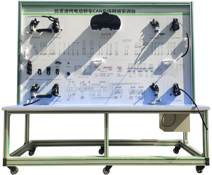 新能源比亞迪車載網(wǎng)絡實訓臺采用比亞迪e5 電動汽車CAN-BUS系統(tǒng)等真實器件制作的實驗實訓臺架,可電動汽車CAN-BUS系統(tǒng)相關(guān)的實驗實訓內(nèi)容。適合于各類院校對純電動車CAN總線網(wǎng)絡系統(tǒng)理論和維修實訓的拆裝與維護、結(jié)構(gòu)與原理認知、系統(tǒng)操作、功能動態(tài)演示、故障檢測與診斷教學需要。